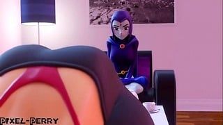 Futa Raven uses her big cock to penetrate horny Starfire in Teen Titans porn action