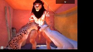 Wild Life Lion Enjoys Two Furry Sluts Sucking His Big Cock