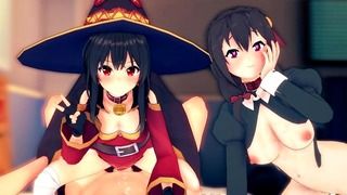 Threesome With Megumin And Yunyun Konosuba Hentai