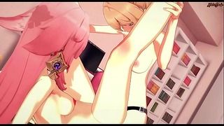 Yae Miko Has Her Legs Spread And Strapon Fucked By Jean – Genshin Impact.