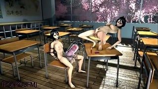 Rukia and Futa Rukia from Bleach Masturbation in School Classroom